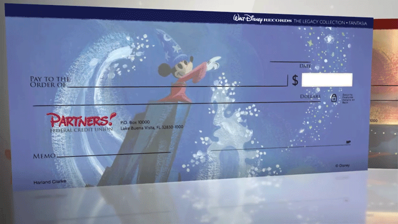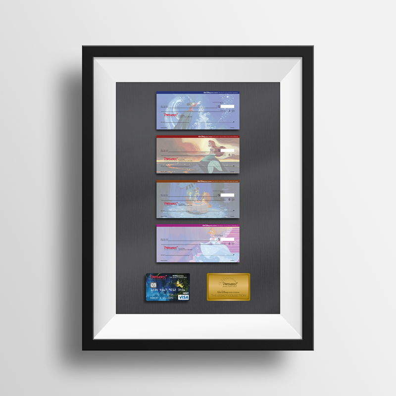 Checks and debit card layout featuring the artwork of the Walt Disney Records Legacy Collection.